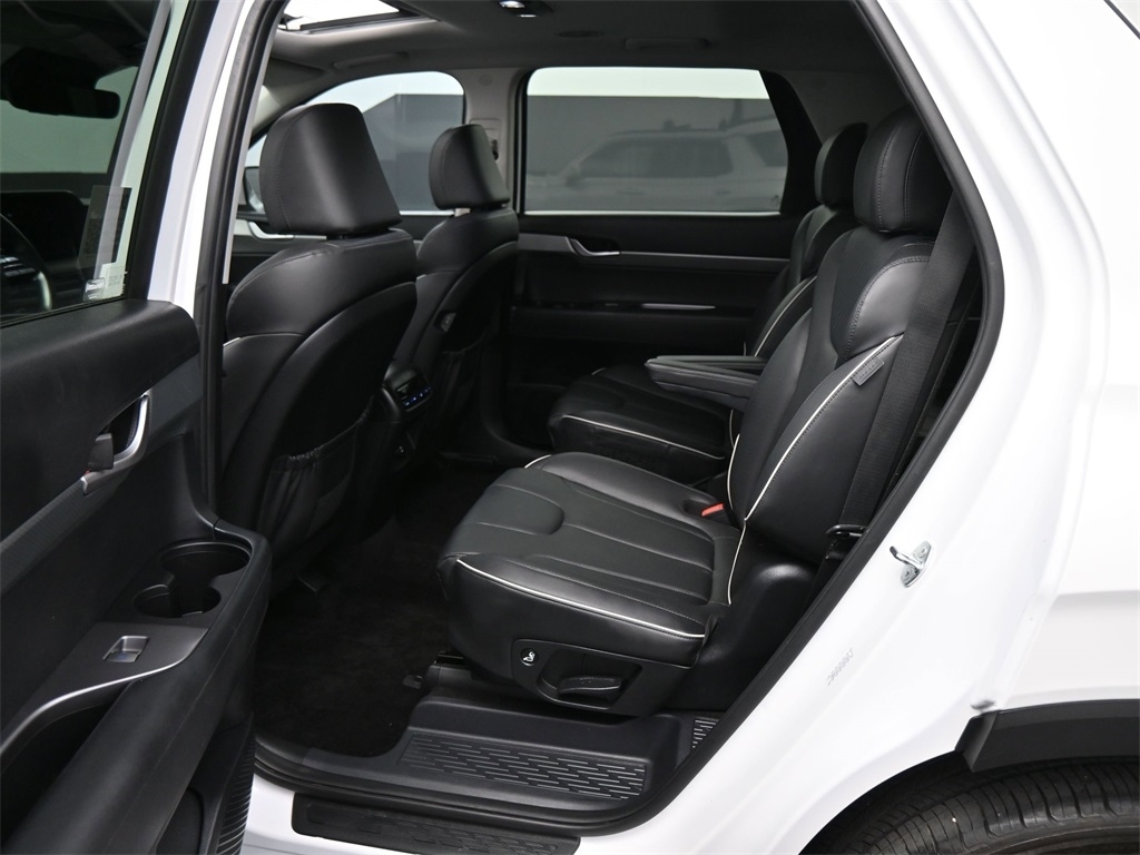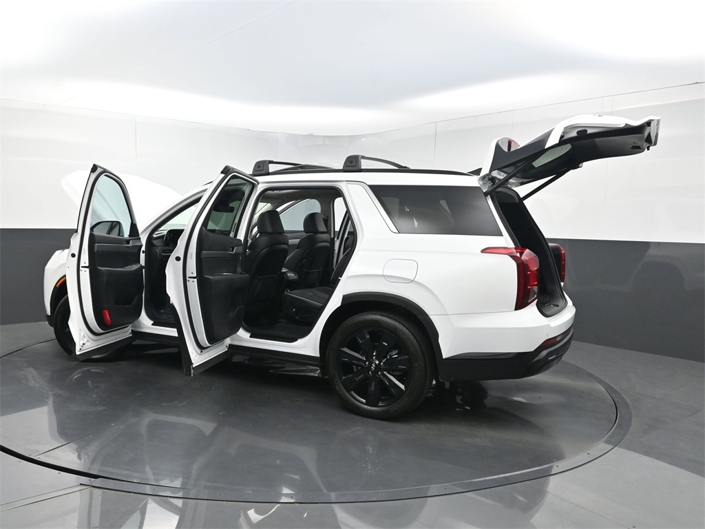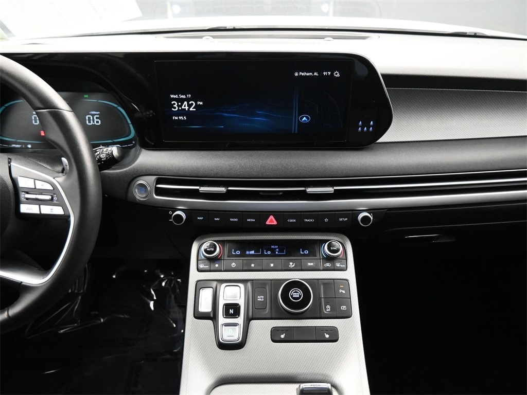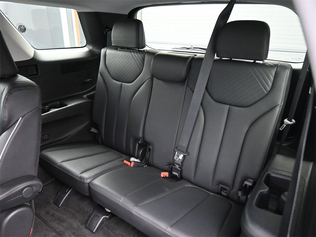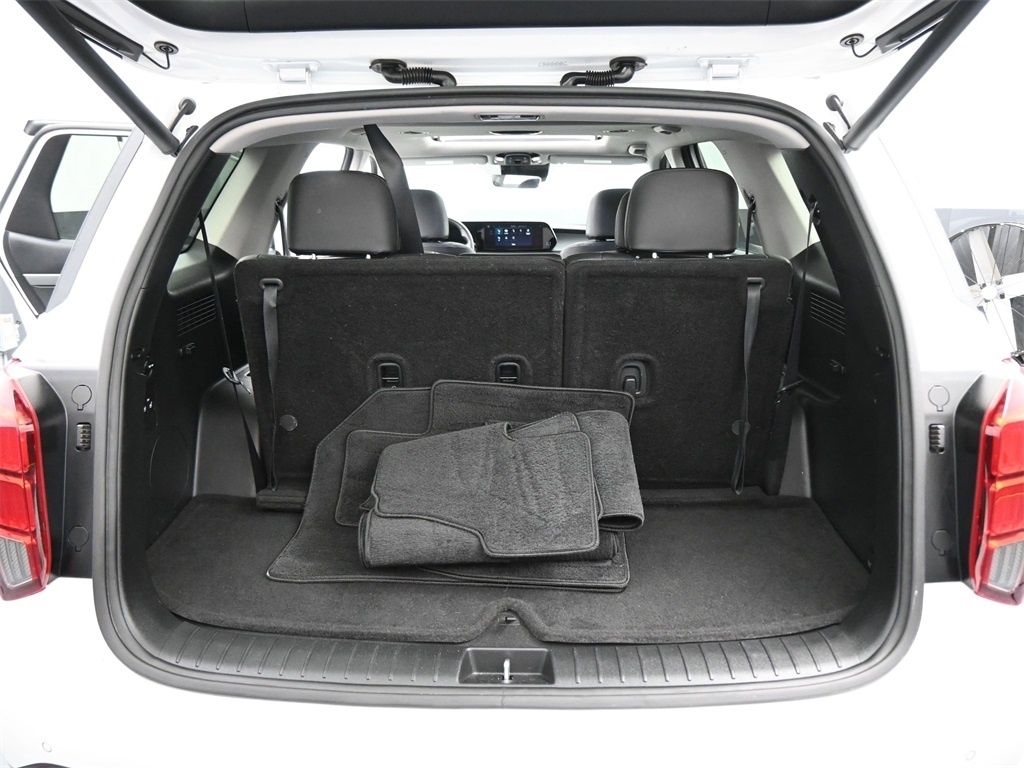 2 rear seat head restraints 3 third-row head restraints 60-40 folding third-row passenger seat 7 Automatic climate control Bucket front seats Carpet front and rear floor mats Carpet rear seatback upholstery Carpet third-row seatback upholstery CleanAir Ionizer cabin air filter Climate control ionization Cloth door trim insert Cloth headliner material Deep tinted windows Driver seat power reclining Driver seat with 2-way power lumbar Driver seat with 8-way directional controls Dual-zone front climate control Fixed second-row seats Fixed third-row seats Fold forward second-row seatback Front facing third-row seat Front passenger seat with 8-way directional controls Front seat center armrest Full carpet floor covering Full floor coverage Full headliner coverage Heated driver and front passenger seats Height adjustable rear seat head restraints Height adjustable third-row head restraints Height and tilt adjustable front seat head restraints H-Tex leatherette front seat upholstery H-Tex leatherette rear seat upholstery H-Tex leatherette rear seat upholstery Laminated side window glass Leather and metal-look steering wheel Manual front seat head restraint control Manual rear seat head restraint control Manual reclining second-row seats Manual telescopic steering wheel Manual third-row head restraint control Manual tilting steering wheel Metal-look console insert Metal-look door panel insert Metal-look instrument panel insert Metal-look interior accents Passenger seat power reclining Plastic front seatback upholstery Rear climate control system with separate controls Rear headliner/pillar climate control ducts Rear under seat climate control ducts Second-row captains' chairs Second-row seat mounted armrests Second-row seats with manual fore and aft Third-row manual reclining seats Third-row split-bench seat Yes 14 beverage holders 2 seatback storage pockets 4 12V power outlets All-in-one remote fob and ignition key Auto-dimming driver side mirror Auto-dimming passenger side mirror Auto-dimming rear view mirror Auto-locking doors Battery charge warning Cargo area concealed storage Cargo area light Cargo area tie downs Cargo area tray/organizer Carpet cargo area floor Conventional left rear passenger door Conventional right rear passenger door Conversation mirror Covered floor console storage Cruise control with steering wheel mounted controls Day/Night rearview mirror Digital clock Driver and passenger door bins Driver and passenger one-touch down windows Driver and passenger one-touch up windows Driver foot rest Driver information center Driver visor mirror Driver visor with expandable coverage Engine temperature warning Engine/electric motor temperature gauge Exterior temperature display Fixed rear windshield Fixed third-row windows Front beverage holders Front facing rear seat Front reading lights Front wireless smart device charging Full floor console Headlights on reminder Heated driver and passenger side door mirrors Highway Driving Assist 1 (HDA 1) Automatic curve slowdown cruise control HomeLink garage door opener Hyundai Digital Key 2.0 Touch smart device-as-key proximity door locks Illuminated driver visor mirror Illuminated glove box Illuminated glove box Illuminated passenger visor mirror Key in vehicle warning Keyfob keyless entry Keyfob remote start Keyfob trunk control Low level warning for fuel Manual fold into floor third-row seat Manual folding door mirrors Mini overhead console Oil pressure warning Over the air updates Overhead console storage Passenger visor mirror Passenger visor with expandable coverage Plastic trunk lid trim Power door locks with 2 stage unlocking Power door mirrors Power first-row windows Power fuel door lock Power liftgate rear cargo door Power second-row windows Proximity cargo area access release Rear beverage holders Rear cargo area ajar warning Rear door bins Rear reading lights Rear window defroster Rear windshield wipers Redundant digital speedometer Retained accessory power Roll-up cargo cover Service interval indicator Smart Cruise Control with Stop & Go (SCC) Smart device remote start Smart key with hands-free access and push button start Steering wheel mounted audio controls Tachometer Tailgate/power door lock Trip computer Trip odometer Trunk/hatch auto-latching Ultrasonic Rear Occupant Alert rear seat check warning Valet key Variable instrument panel light Variable intermittent front windshield wipers 20 x 7.5-inch front and rear black aluminum wheels 4 doors Black bodyside cladding Black front bumper rub strip Black grille Black rear window trim Black wheel well trim Black windshield trim Body-colored door handles Body-colored door mirrors Body-colored front bumper Body-colored rear bumper Chrome side window trim Class III tow rating Compact spare tire with steel wheel Crank-down spare tire First-row sliding and tilting glass sunroof with express open/close activation sunshade Front splash guards Fully galvanized steel body panels with side impact beams Metal-look front and black rear bumper inserts Metal-look rear bumper rub strip Monotone paint P245/50TR20 AS BSW front and rear tires Pearlcoat paint Rear lip spoiler Rear splash guards Roof rails Standard style side mirrors Trailer hitch Trailer sway control Trailer wiring harness Wheel security locks Tier 3 Bin 70 emissions ULEV emissions 12.3 inch primary display 2 total number of 1st row displays 3 month satellite trial subscription 6 speakers AM/FM/digital/SiriusXMsatellite Automatic audio equalizer Auxiliary input jack Bluetooth wireless audio streaming External memory control Integrated roof audio antenna Primary monitor touchscreen Quiet Mode rear audio controls Radio data system (RDS) Seek scan Speed sensitive volume Standard grade speakers Voice activated audio controls 120 month/100 36 month/36 60 month/60 60 month/unlimited 84 month/unlimited 8-speed automatic All-speed ABS and driveline traction control Alternator Aluminum cylinder head Aluminum engine block Automatic Battery ru