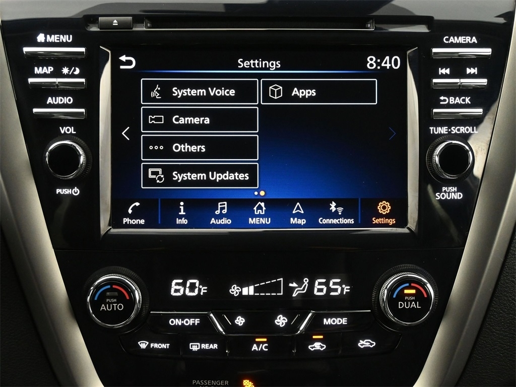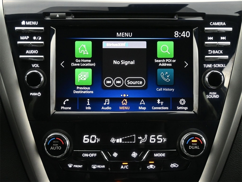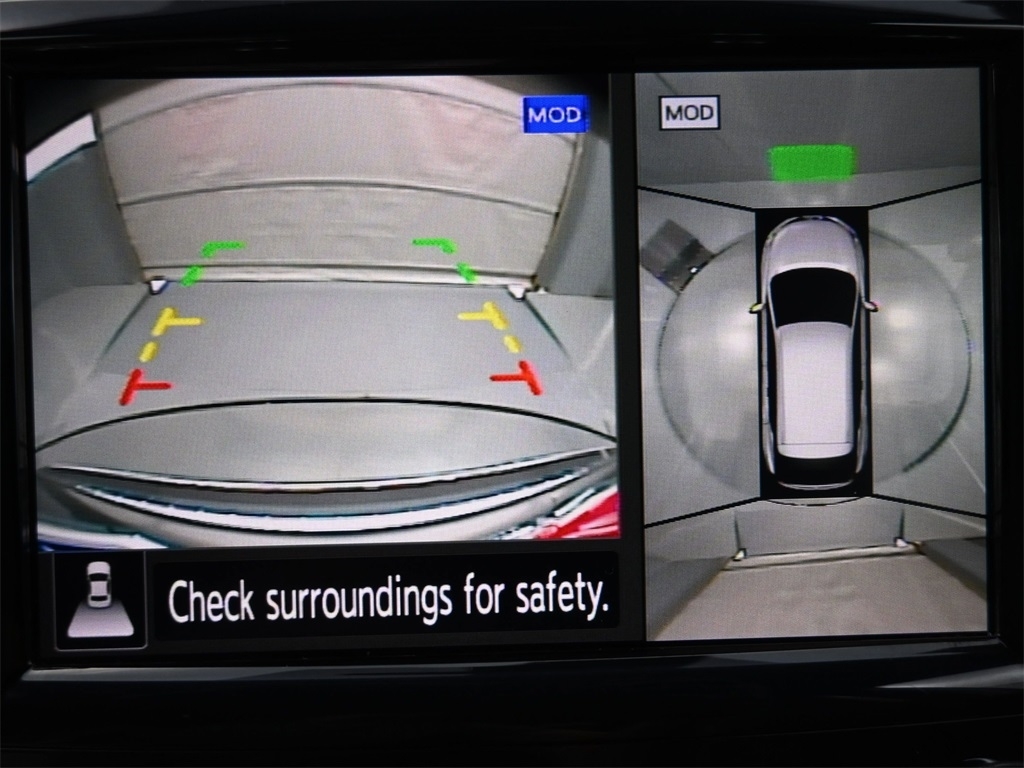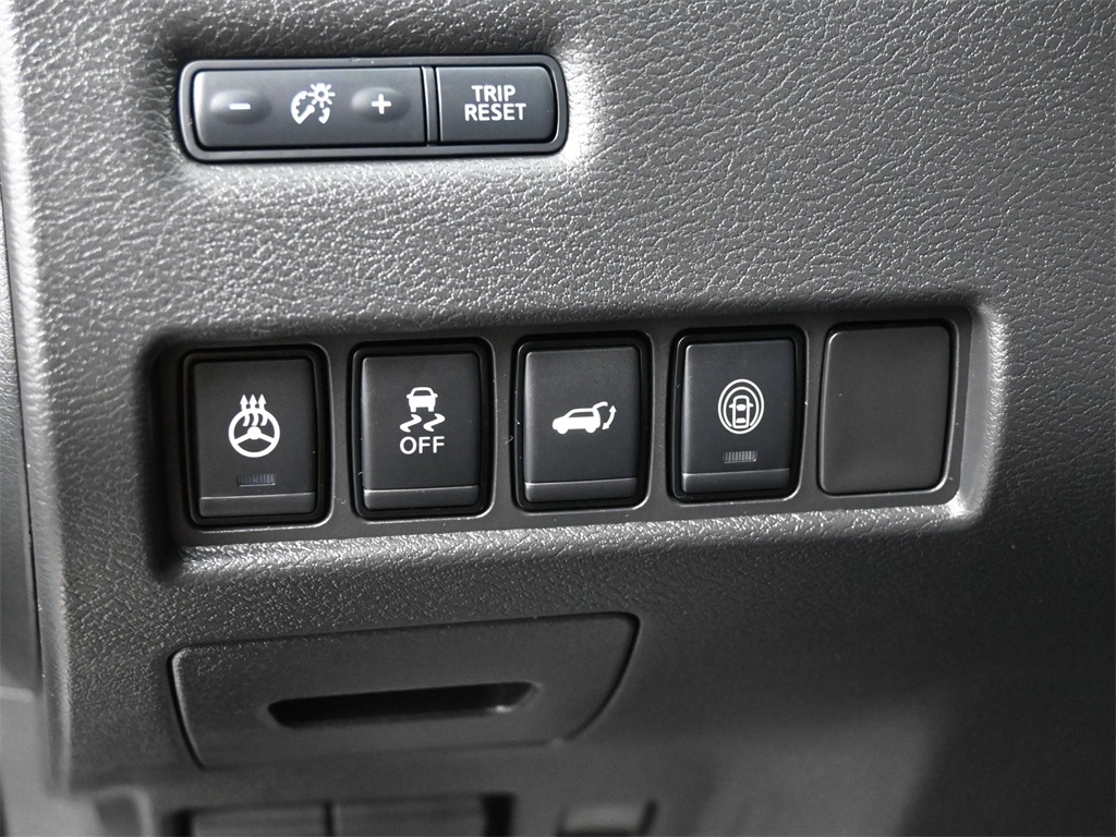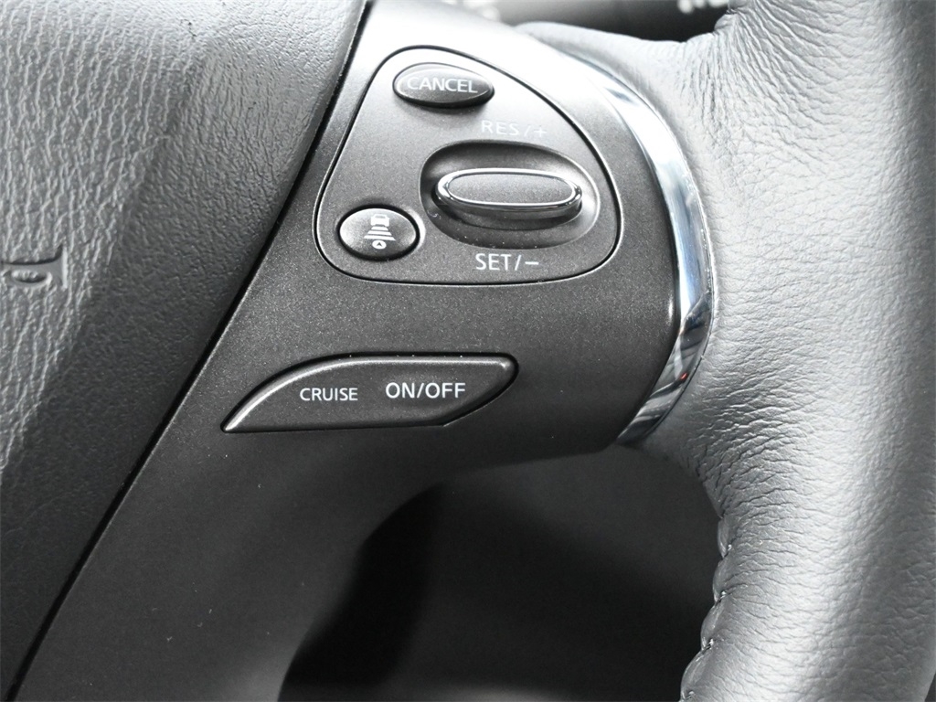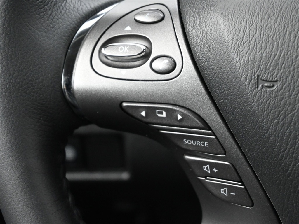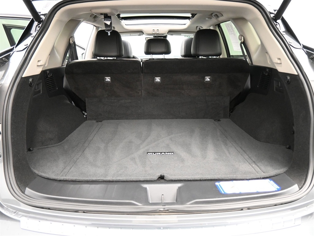 2 memory settings 3 rear seat head restraints 5 60-40 folding rear seats Automatic climate control Bucket front seats Cabin air filter Carpet front and rear floor mats Carpet rear seatback upholstery Chrome and metal-look interior accents Cloth headliner material Deep tinted windows Driver seat power reclining Driver seat with 2-way power lumbar Driver seat with 8-way directional controls Dual-zone front climate control Fixed rear seats Fold forward rear seatback Front passenger seat with 4-way directional controls Front seat center armrest Full carpet floor covering Full floor coverage Full headliner coverage Heated driver and front passenger seats Heated rear seats Heated steering wheel Height adjustable front seat head restraints Height adjustable rear seat head restraints Leather and chrome gear shifter material Leather front seat upholstery Leather rear seat upholstery Leather steering wheel Leatherette door trim insert Leatherette front seatback upholstery Manual front seat head restraint control Manual rear seat head restraint control Manual reclining rear seats Manual telescopic steering wheel Manual tilting steering wheel Passenger seat power reclining and fore/aft control Rear bench seat Rear console climate control ducts Rear seat center armrest Rear seat center armrest storage Rear under seat climate control ducts Simulated wood and metal-look console insert Simulated wood and metal-look instrument panel insert Simulated wood door panel insert Yes 10 beverage holders 2 12V power outlets 2 seatback storage pockets Advanced Drive Assist Display (ADAD) driver information center All-in-one remote fob and ignition key Ambient lighting Auto-dimming rear view mirror Auto-locking doors Battery charge warning Bulb failure warning Cargo area concealed storage Cargo area light Cargo area tie downs Carpet cargo area floor Carpet cargo mat Compass Conventional left rear passenger door Conventional right rear passenger door Covered floor console storage Cruise control with steering wheel mounted controls Day/Night rearview mirror Digital clock Driver and passenger door bins Driver and passenger one-touch down windows Driver and passenger one-touch up windows Driver foot rest Driver visor mirror Driver visor with expandable coverage Easy-Fill Tire Alert tire pressure fill assist Engine/electric motor temperature gauge Exterior temperature display Fixed rear windshield Fixed third-row windows Front beverage holders Front facing rear seat Front reading lights Front windshield solar coating Full floor console Headlights on reminder Heated driver and passenger side door mirrors HomeLink garage door opener Illuminated driver visor mirror Illuminated glove box Illuminated locking glove box Illuminated passenger visor mirror Illuminated sill plates Intelligent Cruise Control (ICC) Intelligent Key with hands-free access and push button start Key in vehicle warning Keyfob activated door locks Keyfob remote engine start Keyfob trunk control Keyfob window control Low level warning for fuel Manual folding door mirrors Manual fuel door release Memory settings include: door mirrors Mini overhead console Oil pressure warning Over the air updates Overhead console storage Passenger visor mirror Passenger visor with expandable coverage Plastic trunk lid trim Power door locks with 2 stage unlocking Power driver and passenger door mirrors with tilt down in reverse Power first-row windows Power liftgate rear cargo door Power second-row windows Proximity cargo area access release Rear beverage holders Rear cargo area ajar warning Rear Door Alert rear seat check warning Rear door bins Rear reading lights Rear window defroster Retained accessory power Service interval indicator Speed sensitive wipers Steering wheel mounted audio controls Tachometer Tailgate/power door lock Trip computer Trip odometer Trunk/hatch auto-latching Valet key Variable instrument panel light Variable intermittent front windshield wipers Yes rear windshield wipers 20 x 7.5-inch front and rear machined w/painted accents aluminum wheels 4 doors Black bodyside cladding Black front bumper rub strip Black grille with chrome surround Black rear bumper rub strip Black rear window trim Black wheel well trim Black windshield trim Body-colored door mirrors Body-colored front bumper Body-colored rear bumper Chrome bodyside insert Chrome door handles Chrome front and rear bumper inserts Chrome side window trim Compact spare tire with steel wheel First and second-row sliding and tilting glass sunroof with express open/close activation sunshade Front splash guards Fully galvanized steel body panels with side impact beams Metallic paint Monotone paint P235/55HR20 AS BSW front and rear tires Rear lip spoiler Rear splash guards Spare tire mounted under the cargo floor Standard style side mirrors LEV3-ULEV70 emissions Tier 3 Bin 70 emissions 11 speakers 2 total number of 1st row displays 3 month satellite trial subscription 8 inch primary display AM/FM/SiriusXMsatellite Amplifier Auxiliary input jack Bluetooth wireless audio streaming Bose speakers CD player located in the dashboard/instrument panel CD player MP3 decoder Digital signal processor Diversity antenna Internet radio capability NissanConnect external memory control Primary monitor touchscreen Radio data system (RDS) Seek scan Single-disc CD player Speed sensitive volume Voice activated audio controls Window grid and roof mount audio antenna 36 month/36 36 month/36 60 month/60 60 month/unlimited 2-wheel steering system 3.5L V-6 DOHC Active Brake Limited Slip Differential (ABLS) brake actuated limited slip differential All-speed ABS and driveline traction control All-wheel drive Alternator Aluminum cylinder head Aluminum engine block Automatic Automatic full-time AWD Battery run down protection CVT Four channel ABS brakes Front and rear ventilated disc brakes Front anti-roll bar Front coil springs Front mounted engine Gas-pressurized shock absorbers Hydraulic power-assist steering system ICE Indepe